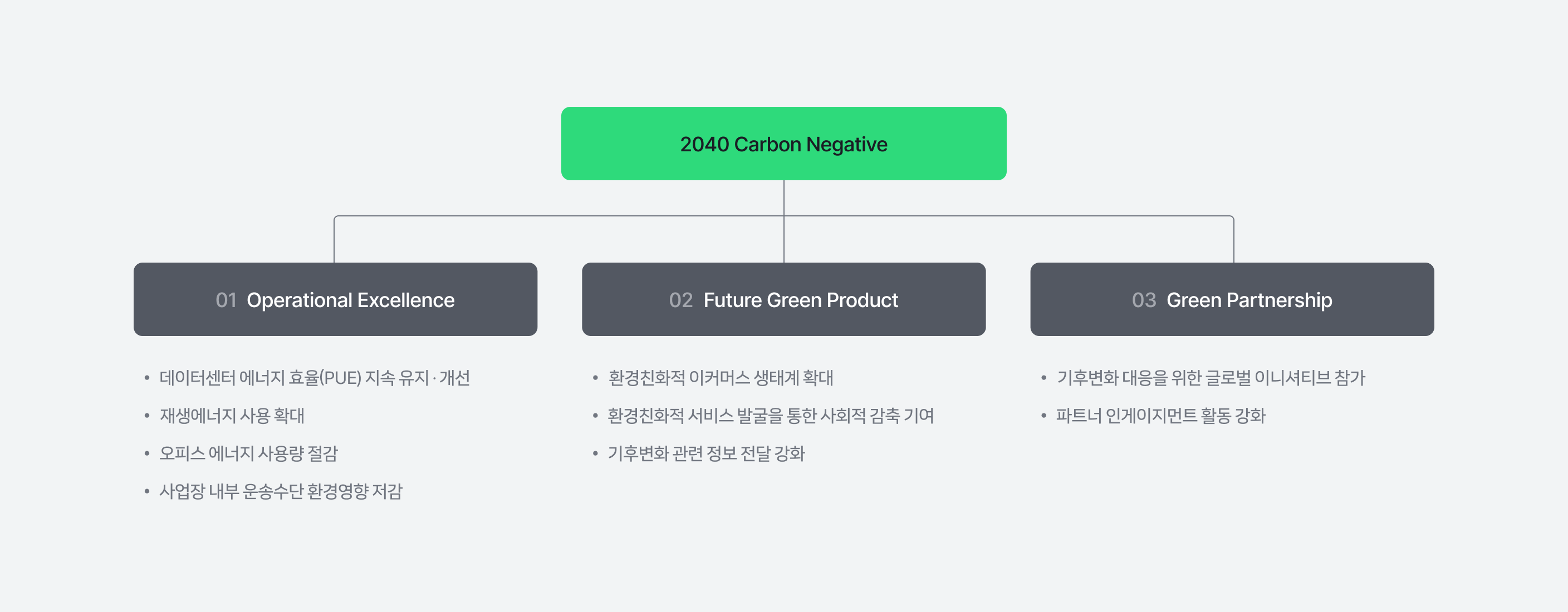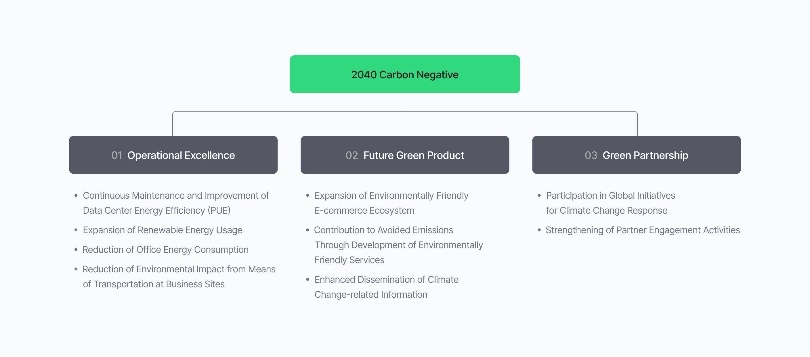 재생 에너지 전환, 환경친화적 서비스 발굴 지원, 다양한 이해관계자와의 파트너십 구축 등 2040년 온실가스 순 배출량을 0 이하로 만들기 위해 노력합니다.