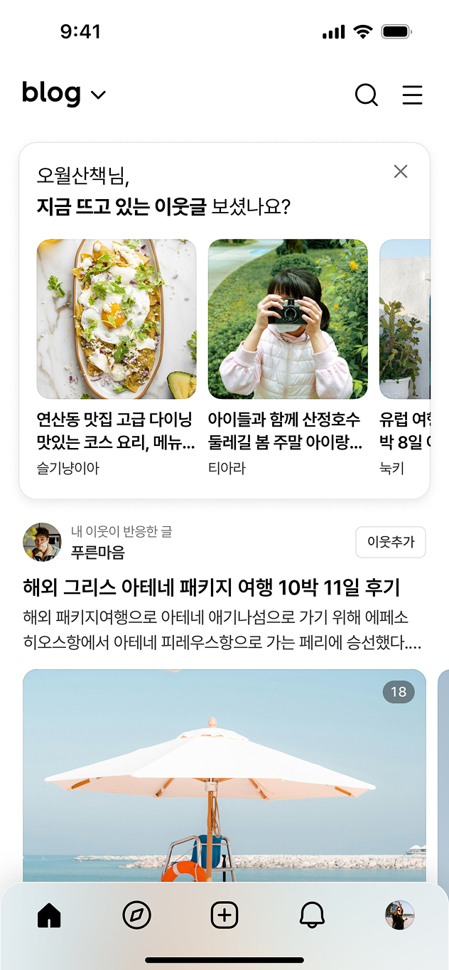 네이버 블로그는 나만의 경험과 일상을 기록하고, 공통 관심사를 가진 다른 사용자들과 이웃을 맺고 소통하는 서비스입니다. 사진, 동영상, 지도 등을 편리하게 첨부해 글을 풍성하게 작성할 수 있으며 나만의 개성과 전문성을 담은 브랜드로 키워나갈 수 있습니다.