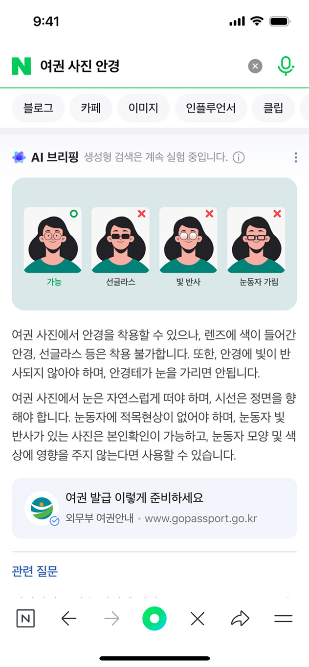 AI 브리핑은 생성형 AI를 활용하여 사용자의 검색 의도와 맥락을 이해하여, 요약된 답변과 출처 정보, 관련 질문 등을 함께 확인할 수 있도록 검색 결과를 제공합니다.