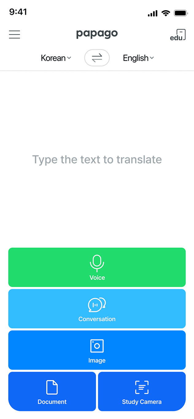 언어의 장벽 없는 세상을 꿈꾸는 똑똑한 AI 번역기 파파고는 한국어, 영어, 일본어 등 16개의 언어로 텍스트, 음성, 이미지, 문서 등 다양한 형태의 번역 기능을 제공합니다.