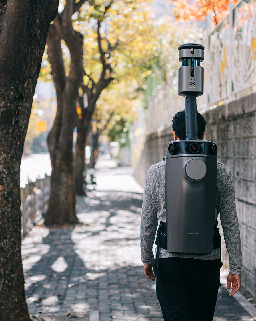 계단 등 복합 공간의 디지털 트윈 데이터를 제작하기 위한 웨어러블 매핑 디바이스입니다. 뛰어난 확장성을 기반으로 실내부터 실외 도보까지, 서로 다른 환경의 공간 데이터를 가장 효과적인 방식으로 연결합니다. -